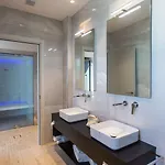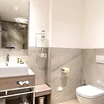 Værelserne på Hotel Savini har et mini køleskabsbar, en personlig værdiboks og et skrivebord samt separat toilet og en bruser.